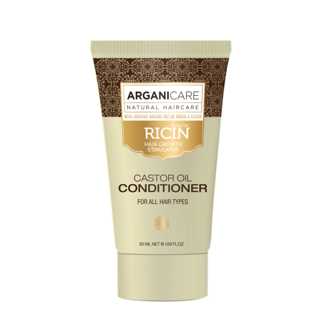 Balsam travel size pentru stimularea cresterii parului, cu ulei de ricin pentru toate tipurile de par, Arganicare, 50 ml