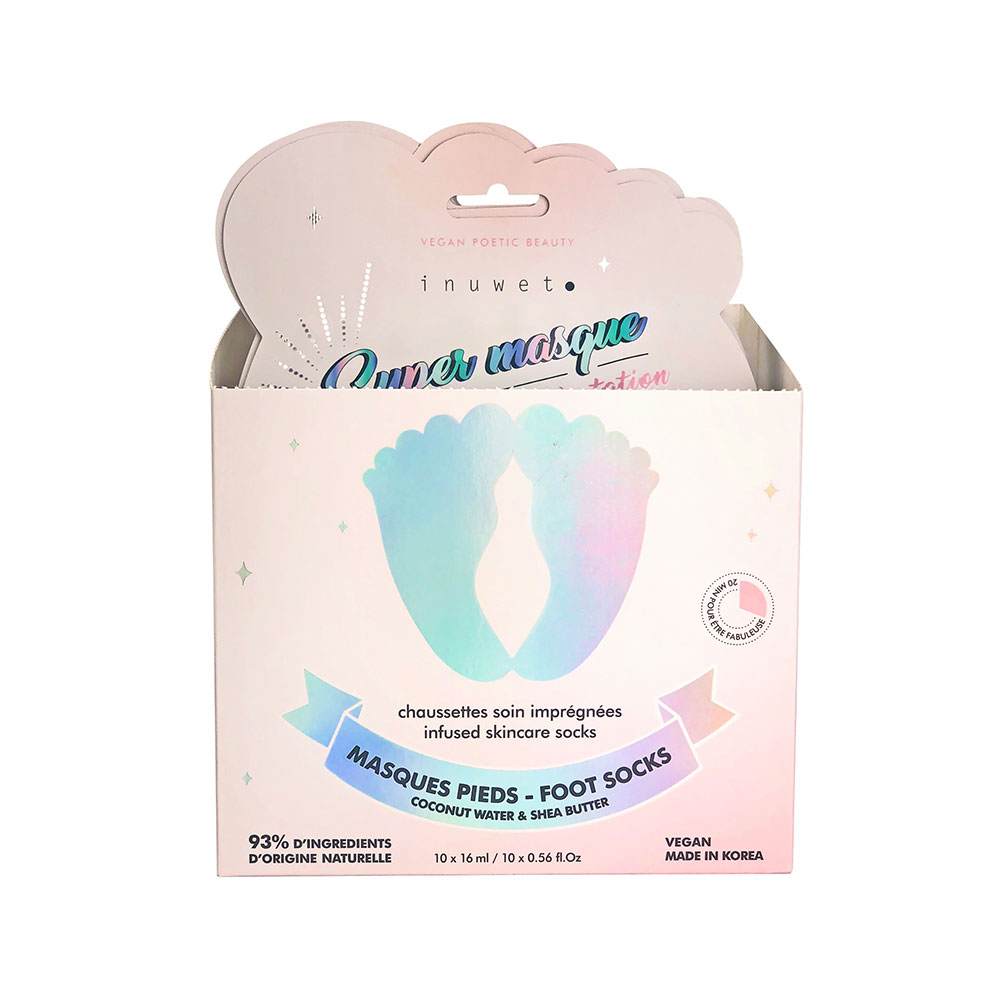 Imbogatita cu apa de cocos si unt de shea, masca pentru talpi Inuwet hidrateaza intens talpile ucate sau crapate, lasandu-le catifelate.
