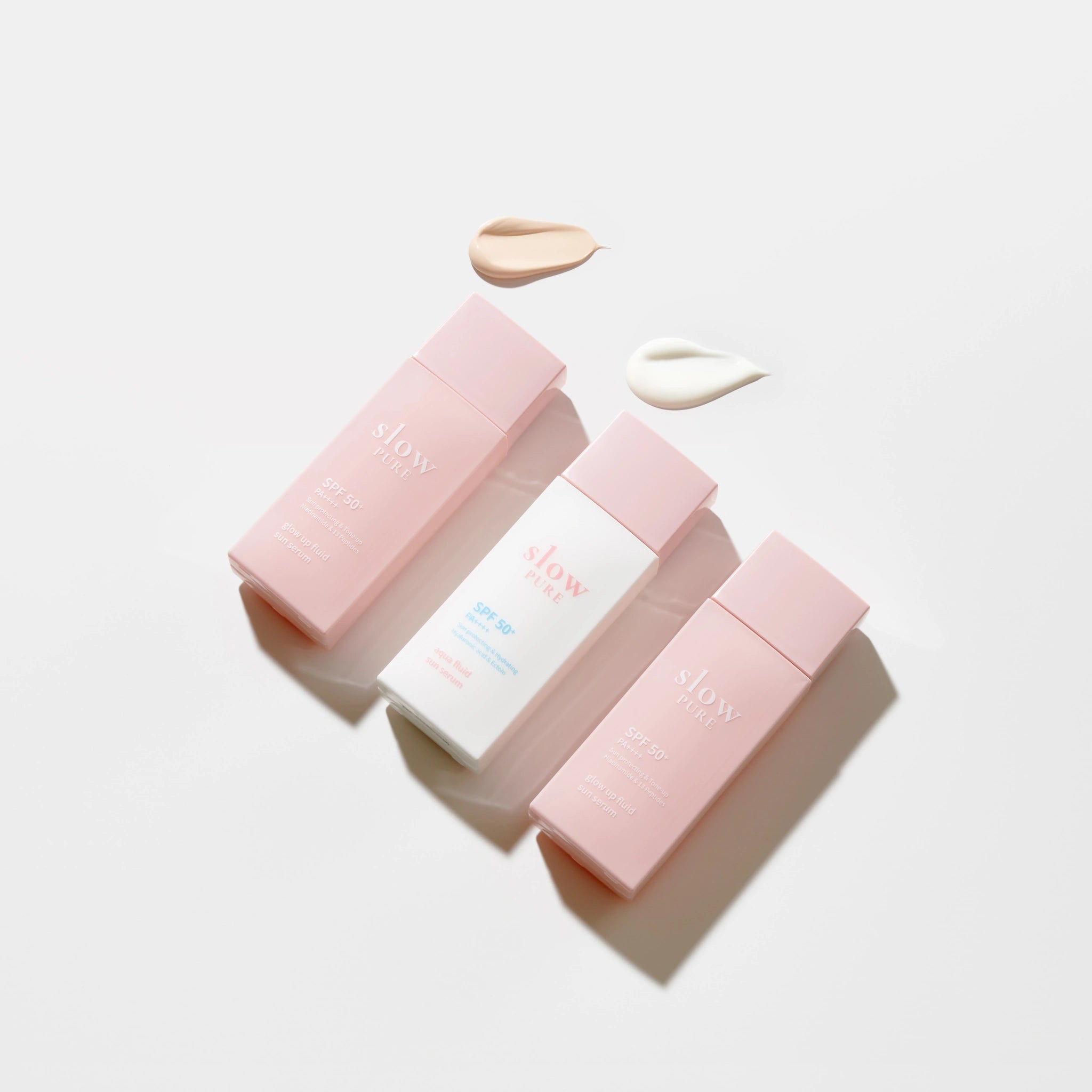 Slowpure Aqua Fluid Sun Serum SPF50+ PA++++ este un ser de protectie solara cu textura fluida, tip esenta, creat pentru a proteja eficient pielea impotriva razelor UV, oferind in acelasi timp hidratare intensa si confort zilnic. Formula sa inovatoare combina protectia solara ridicata cu ingrediente hidratante si calmante, pentru o experienta placuta, fara senzatie lipicioasa sau reziduuri albe. Imbogatit cu suc de mesteacan (Betula alba), ectoina si acid hialuronic, acest ser ajuta la mentinerea nivelului optim de hidratare, calmeaza pielea sensibila si sustine bariera cutanata, chiar si sub expunere intensa la soare. Textura tip ser se absoarbe rapid, lasa pielea neteda si respirabila si se simte mai degraba ca o crema hidratanta decat ca un produs clasic cu SPF. Creat pentru utilizare zilnica, Slowpure Aqua Fluid Sun Serum este ideal pentru pielea uscata, deshidratata sau sensibila, dar si pentru cei care evita cremele solare groase si grase. Recomandat in special pentru incepatorii in slow-aging skincare, acest produs ofera protectie constanta impotriva imbatranirii premature, petelor pigmentare si agresiunilor solare.