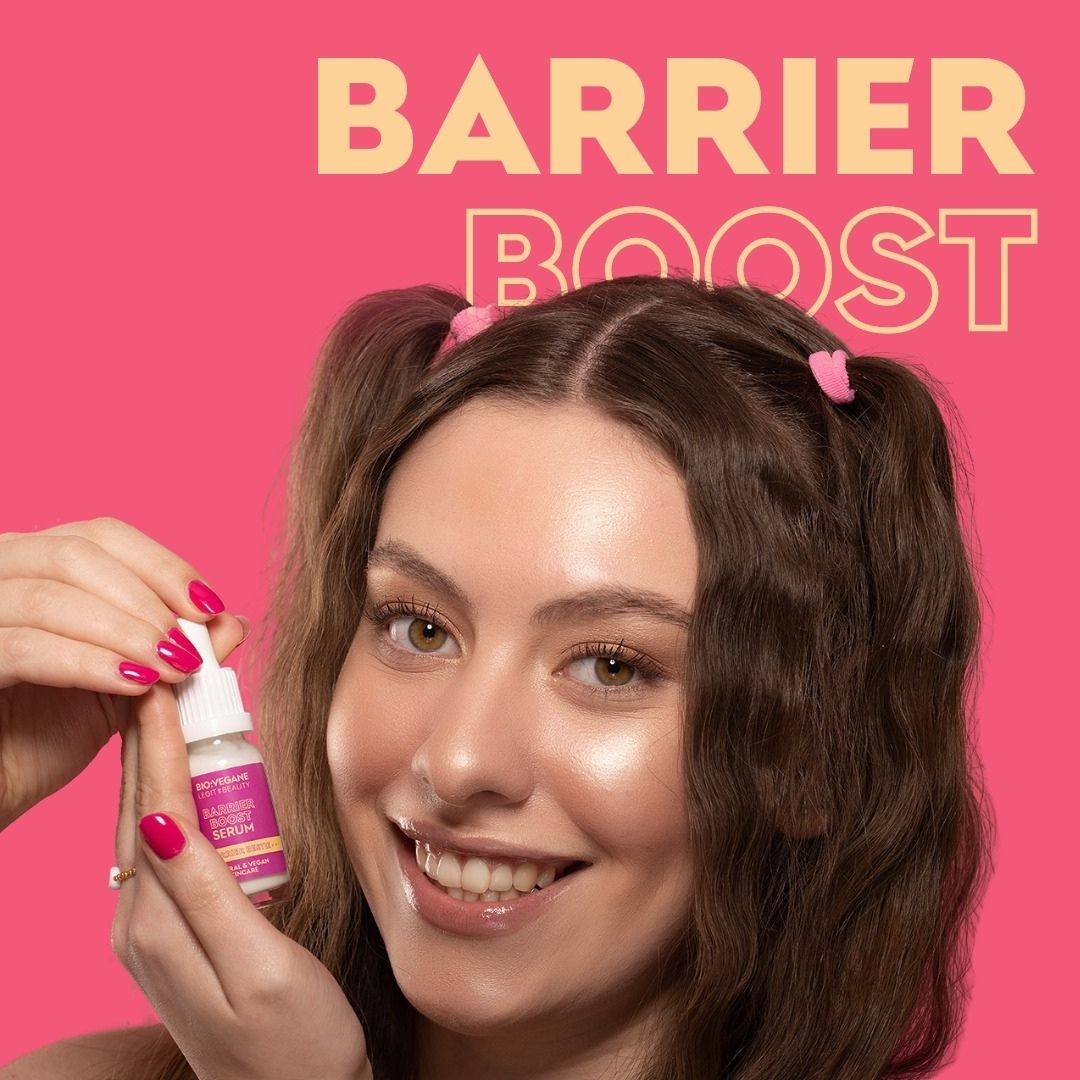 Protejeaza si regenereaza bariera naturala a pielii cu Barrier Boost Serum, un ser intens nutritiv, imbogatit cu complex de uleiuri pentru bariera pielii, fitoretinol, ulei de jojoba si squalane. Formula sa avansata sustine productia naturala de colagen, reduce pierderea de umiditate si ajuta pielea sa devina mai rezistenta si mai echilibrata.