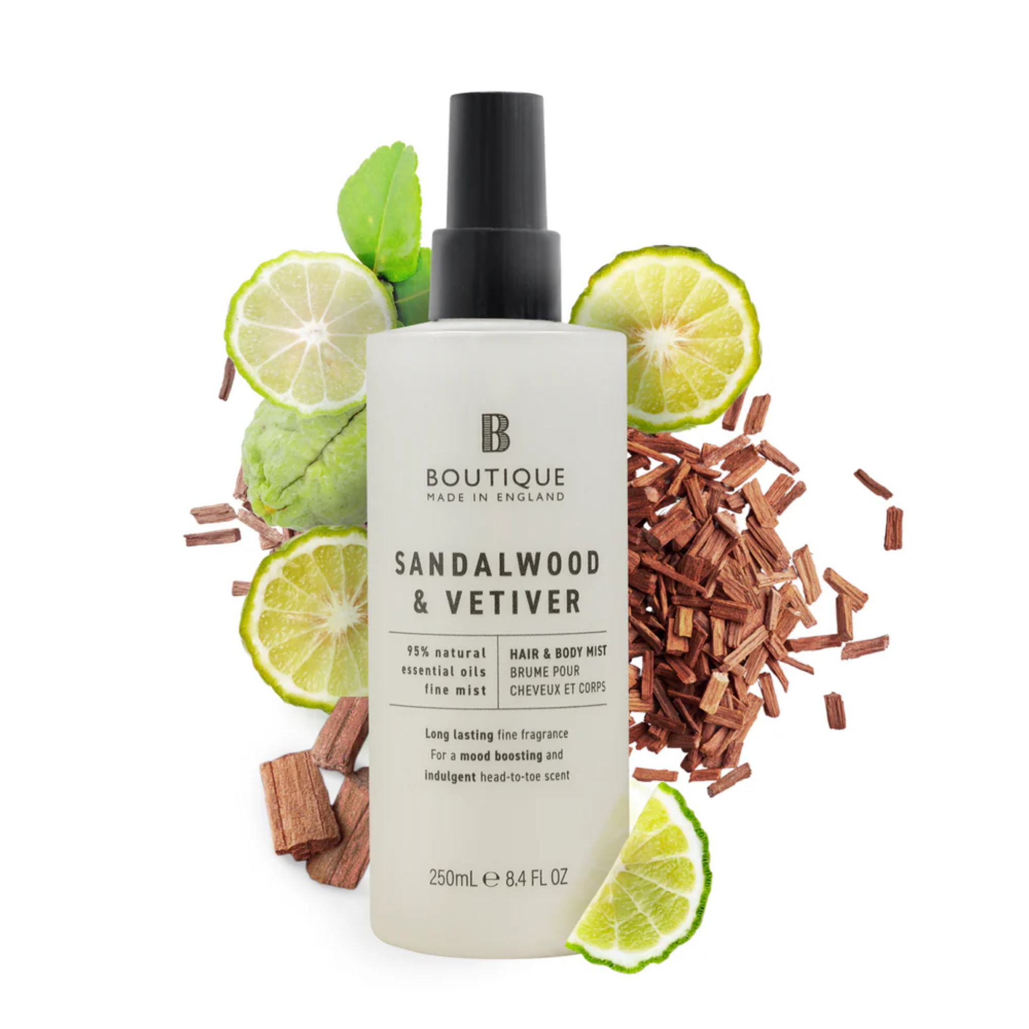 Spray pentru par & corp cu parfum de lemn de santal & vetiver, Boutique, 250 ml