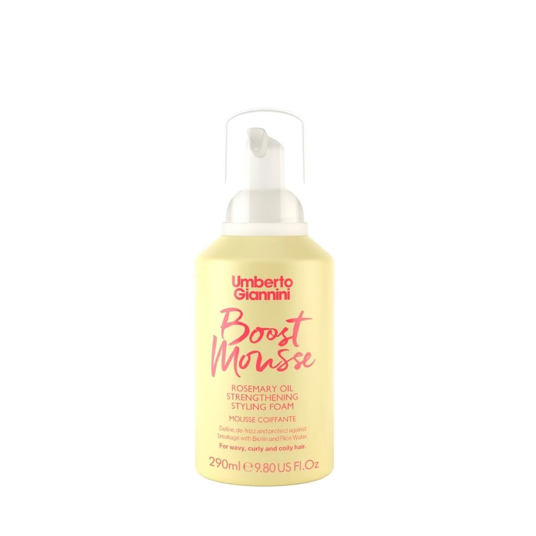Obtine bucle perfect definite, elastice si sanatoase cu Strong Curls Boost Mousse! Aceasta spuma de coafare cu fixare naturala este ideala pentru toate tipurile de bucle, oferind un echilibru perfect intre fixare, hidratare si protectie. Formula sa usoara, 93% naturala, este imbogatita cu Biotina, Ulei de Rozmarin, Apa de Orez, Ulei de Jojoba si Ulei de Ricin, oferind un plus de hidratare si nutritie, fara a incarca firul de par. Potrivit parului ondulat, cret si foarte cret. Ideal pentru parul deteriorat. In ce pas din rutina integrez produsul?Stilizare